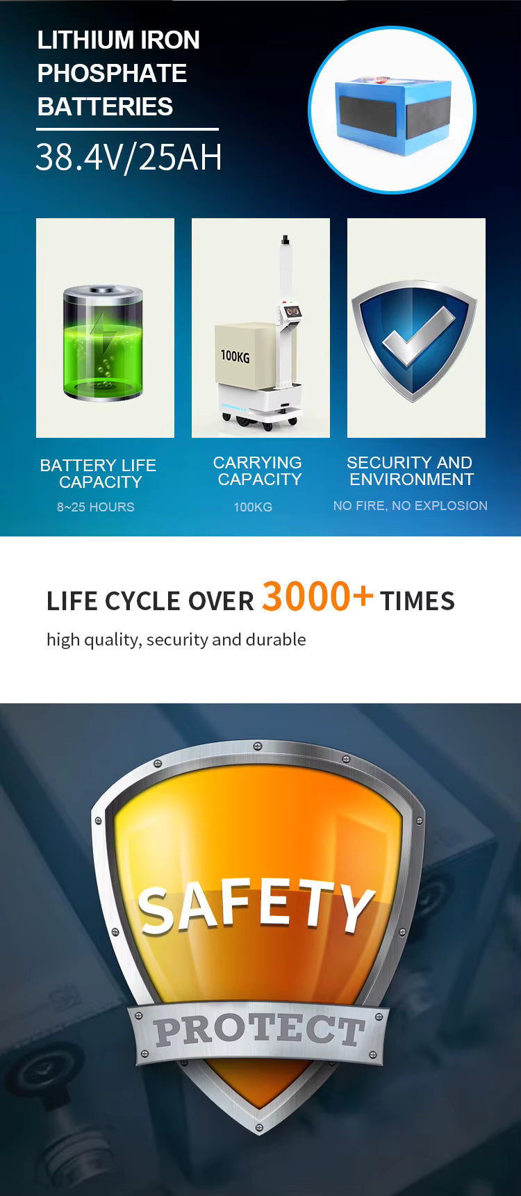 - Batterie : 38,4 V / 25 Ah (Haute capacité)