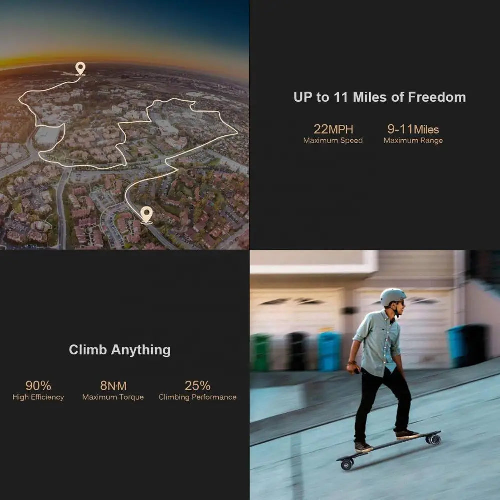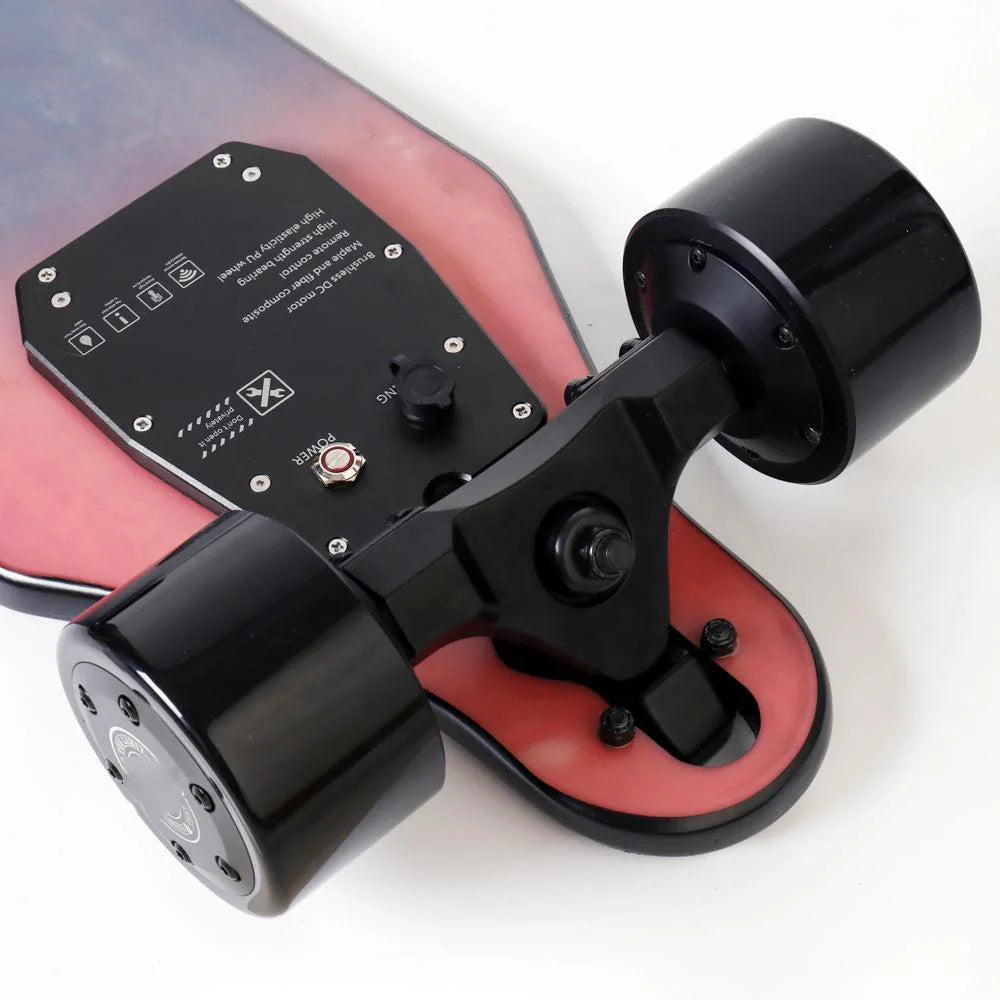 Ce skateboard électrique allie puissance et style grâce à ses deux moteurs de 42 V et son deck en érable à 10 couches. Sa vitesse maximale de 45 km/h vous propulse sur la route avec une maniabilité exceptionnelle. Le contrôle sans fil vous offre une liberté totale, tandis que la capacité de charge de 200 kg assure une robustesse inégalée. Le design élégant et les options de couleur personnalisées font de chaque trajet une aventure ludique.