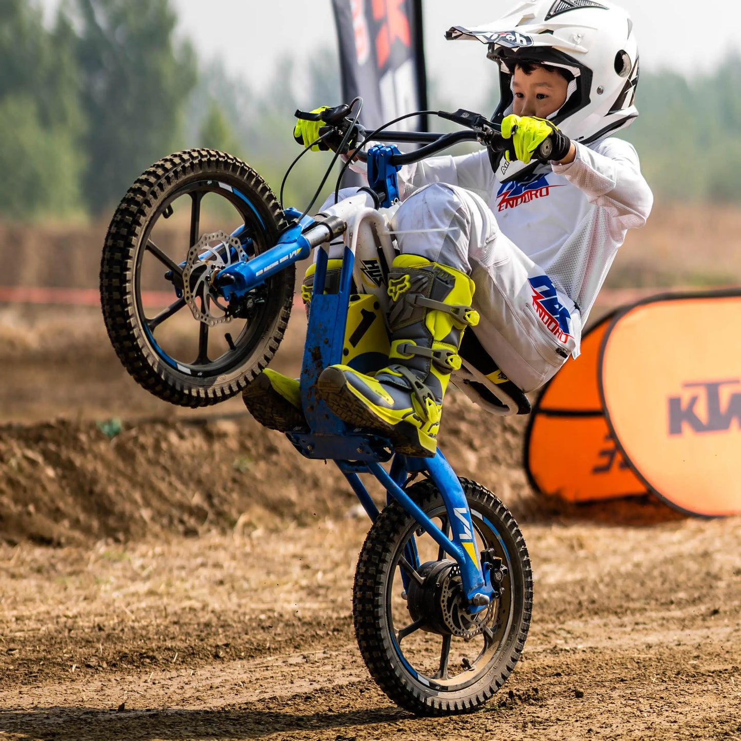 Ce vélo électrique pour enfants combine vitesse et sécurité avec son moteur brushless de 653 W. La batterie de 5 Ah offre jusqu'à 25 km d'autonomie, idéale pour les aventures en plein air. Les freins à huile hydraulique assurent un arrêt fiable même sur les terrains accidentés. Son cadre en alliage d'aluminium et ses pneus de 12 à 20 pouces garantissent robustesse et confort.