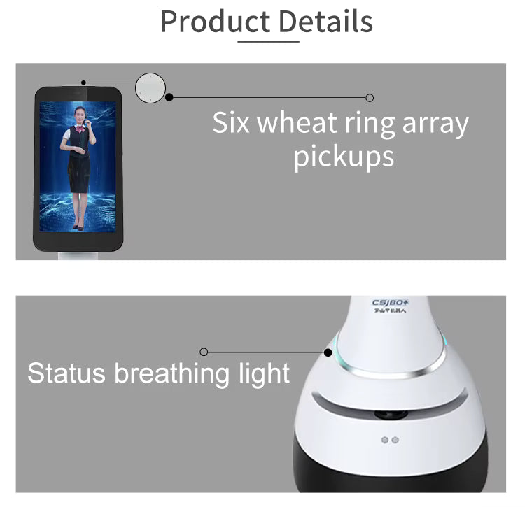 Le robot Jupiter combine une intelligence avancée avec un design élégant gris et blanc, . Son écran tactile capacitif de 23,8 pouces offre une résolution nette de 1920 × 1080 pour une interaction fluide. Alimenté par une batterie lithium de 40 Ah, il garantit plus de 12 heures d'autonomie et se recharge en moins de 10 heures. Conçu pour sécuriser et guider vos clients, il est équipé d'un visage LED et d'une capacité de charge de 120 W.