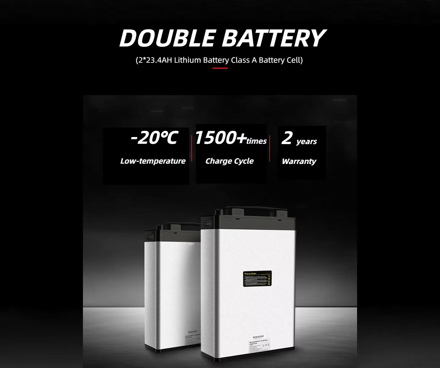 | Capacité de la batterie | 2 batteries 60 V 23,4 Ah |